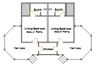 | There is space for max. 6 persons, 2 in one part, 4 in the other. |